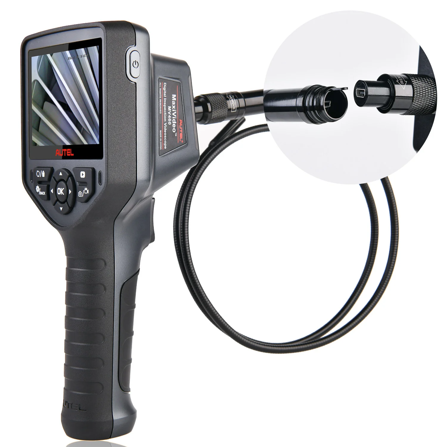 Autel MaxiVideo MV460 Digital Inspection Camera comes with 1-button quick image capture and video recording function and can record and playback images and video clips.